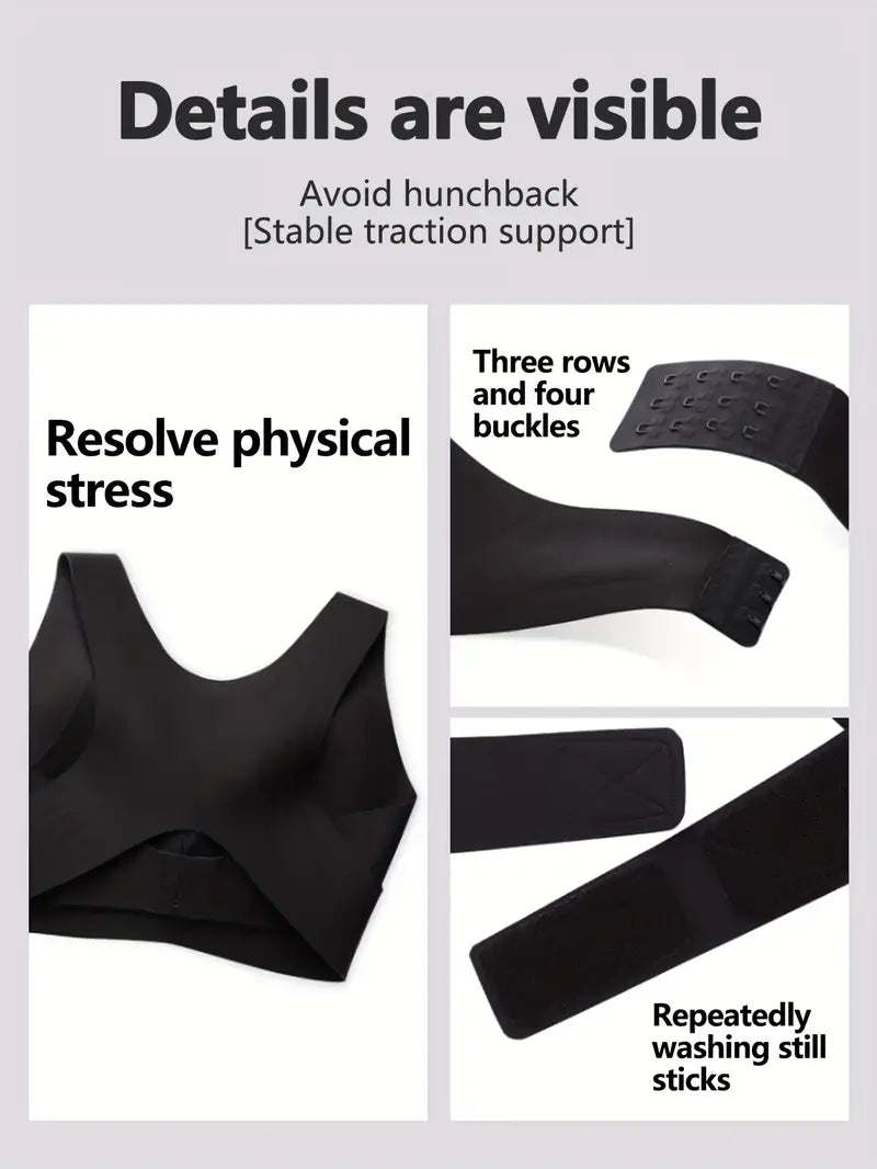 Our posture corrector bra is designed with advanced spinal alignment technology to provide invisible support throughout your day. Unlike regular bras, this premium garment features: